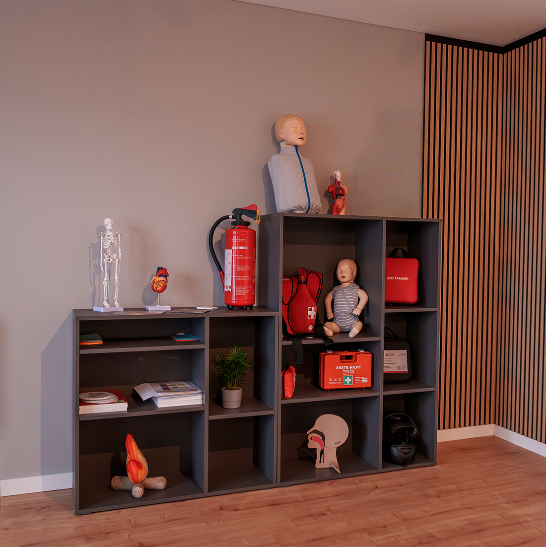 In unserer Schulungsumgebung setzen wir auf hochwertige Trainingsmaterialien, damit jede Übung so realistisch wie möglich ist. Von modernen Übungspuppen über Ersthelfer-Sets bis hin zu Brandschutz-Equipment – all unser Material ist darauf ausgelegt, Handgriffe zu trainieren, Abläufe zu verinnerlichen und Sicherheit im Ernstfall zu schaffen.